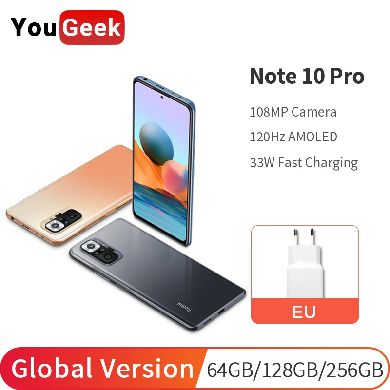 Global Version Xiaomi Redmi Note 10 Pro Cellphone 108MP Camera Snapdragon 732G 6.67″ 120Hz AMOLED 33W Fast Charging 5020mAh NFCGlobal Version Xiaomi Redmi Note
