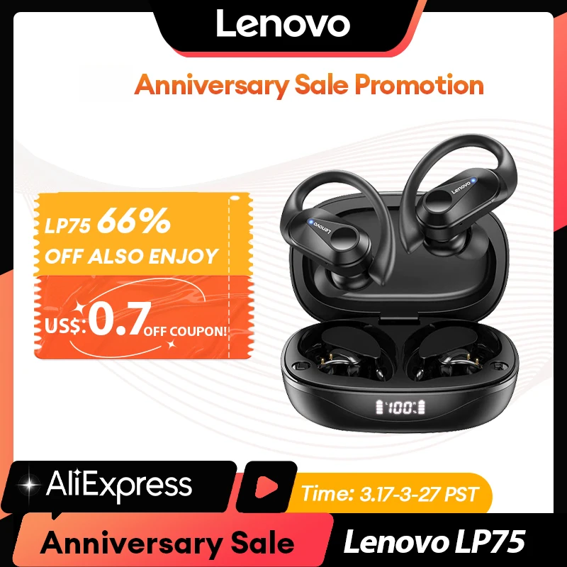 Choice Lenovo LP75 TWS Sports Earphones Bluetooth 5.3 Wireless Headphones Waterproof HiFi
