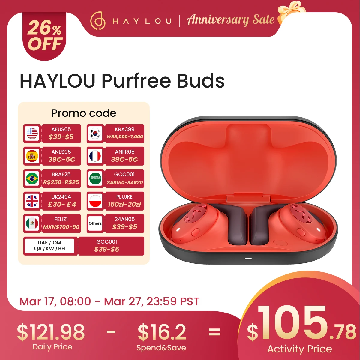 HAYLOU PurFree Buds True Wireless Open Earbuds 32H Endurance IP55 Waterproof Anti-Sound