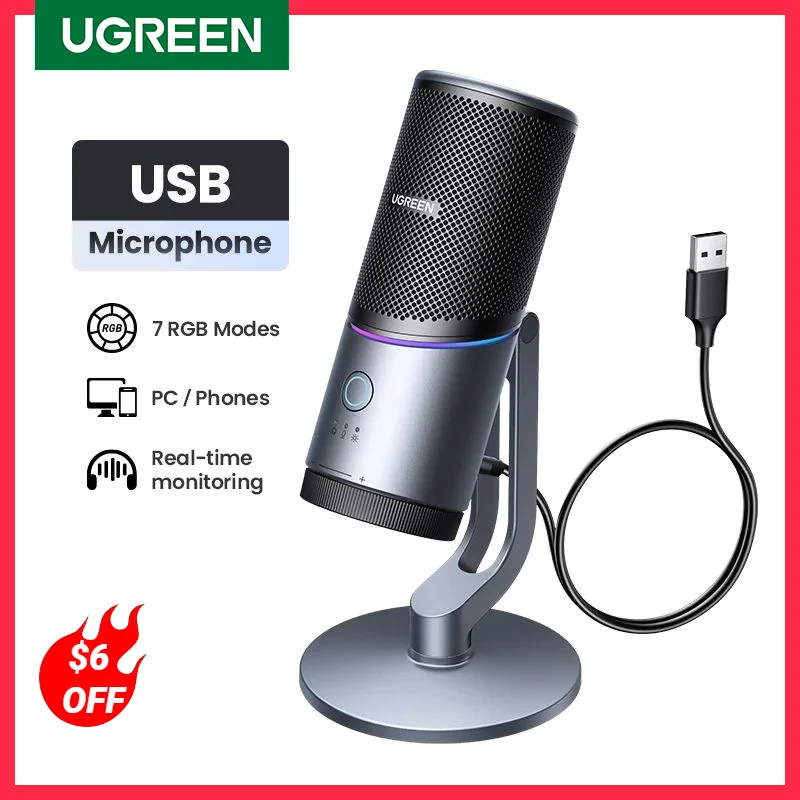 UGREEN USB Microphone with RGB Modes Professional Condenser Mic for PC Mac