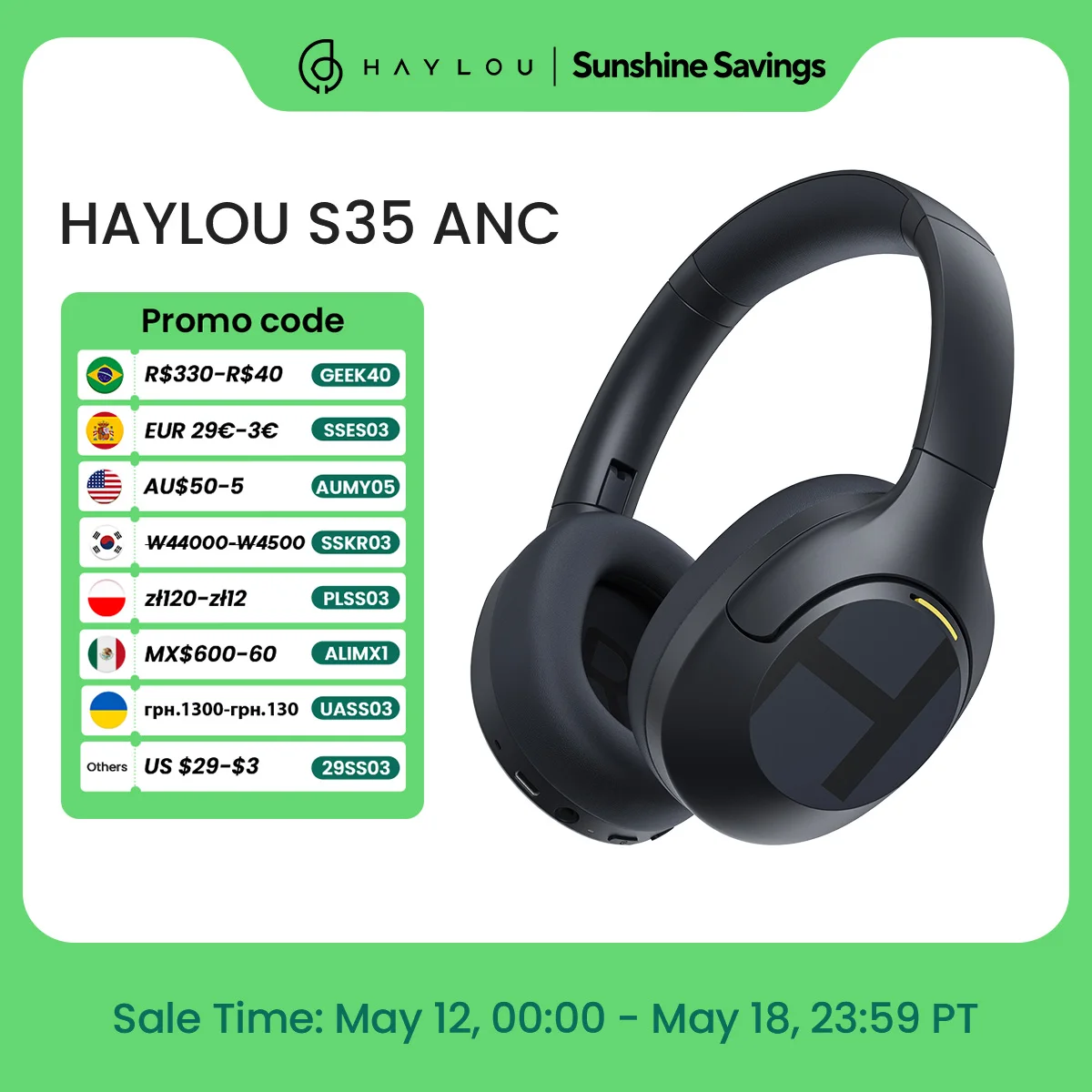 HAYLOU S35 ANC Wireless Bluetooth Headphones 42dB ANC ENC Over-ear Headphone Noise