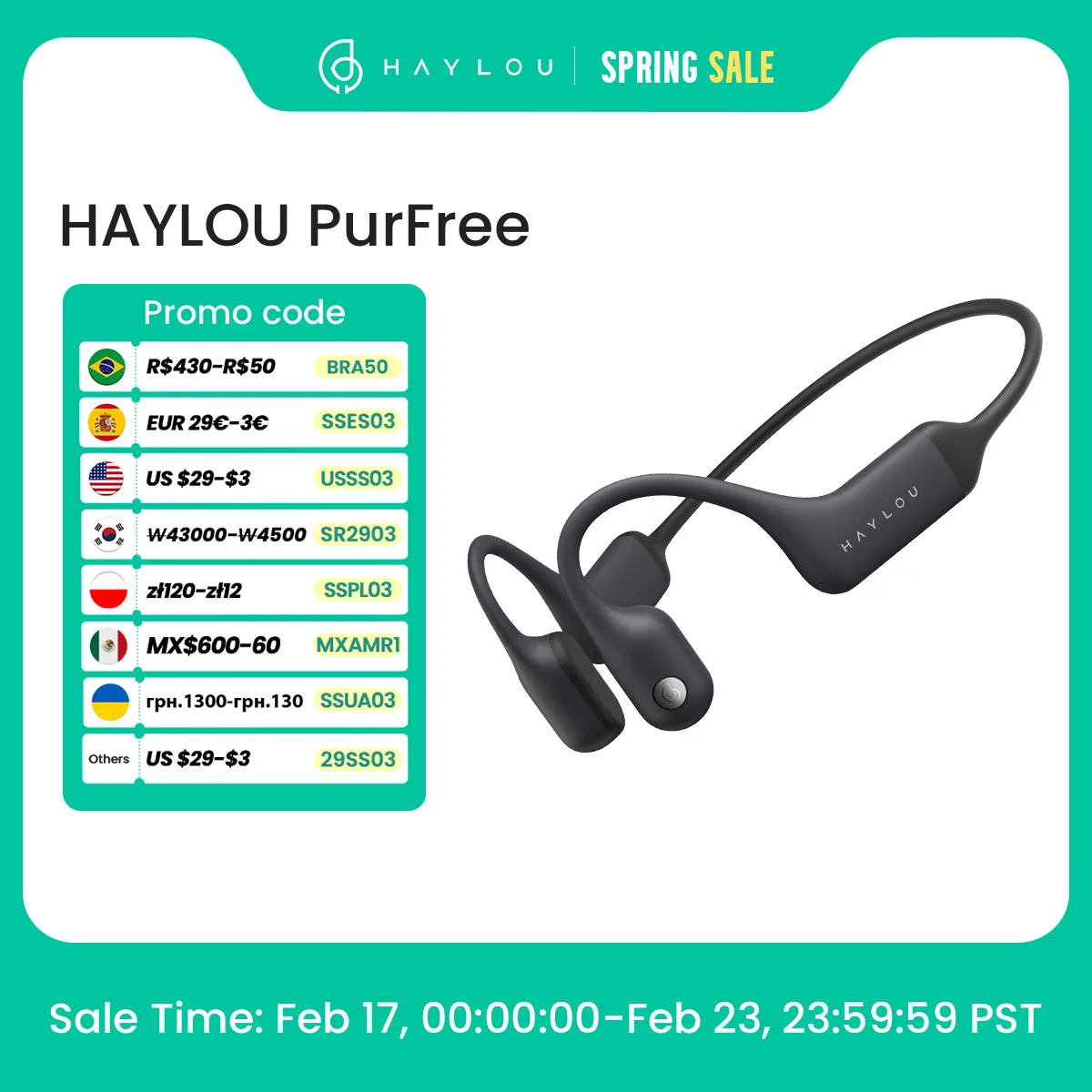 HAYLOU PurFree (BC01) Bone Conduction Headphones Qcc3044 V5.2 Bluetooth Earphones IP67 Waterproof