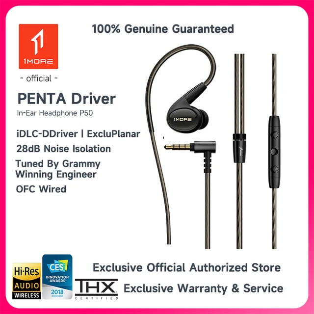 1MORE Penta Driver P50 Wired Headphones In-Line Controls With Mic OFC Wire