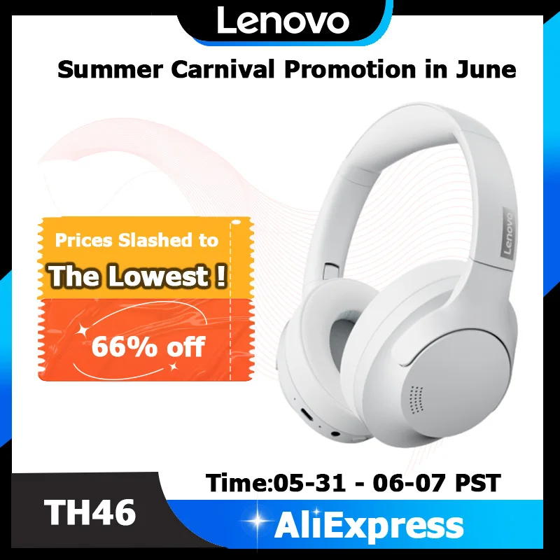 Lenovo Th46 Wireless Bluetooth 5.4 Headphones Scalable Super Battery Life Headset Hd