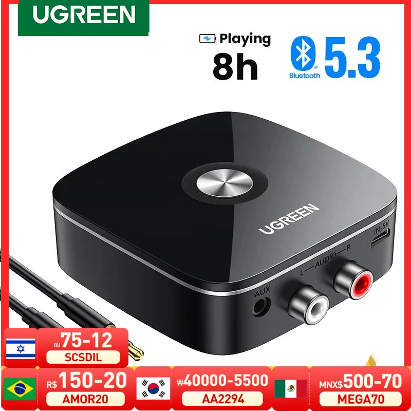 UGREEN AUX RCA Bluetooth Receiver Adapter for Home Stereo System, HiFi 3.5mm