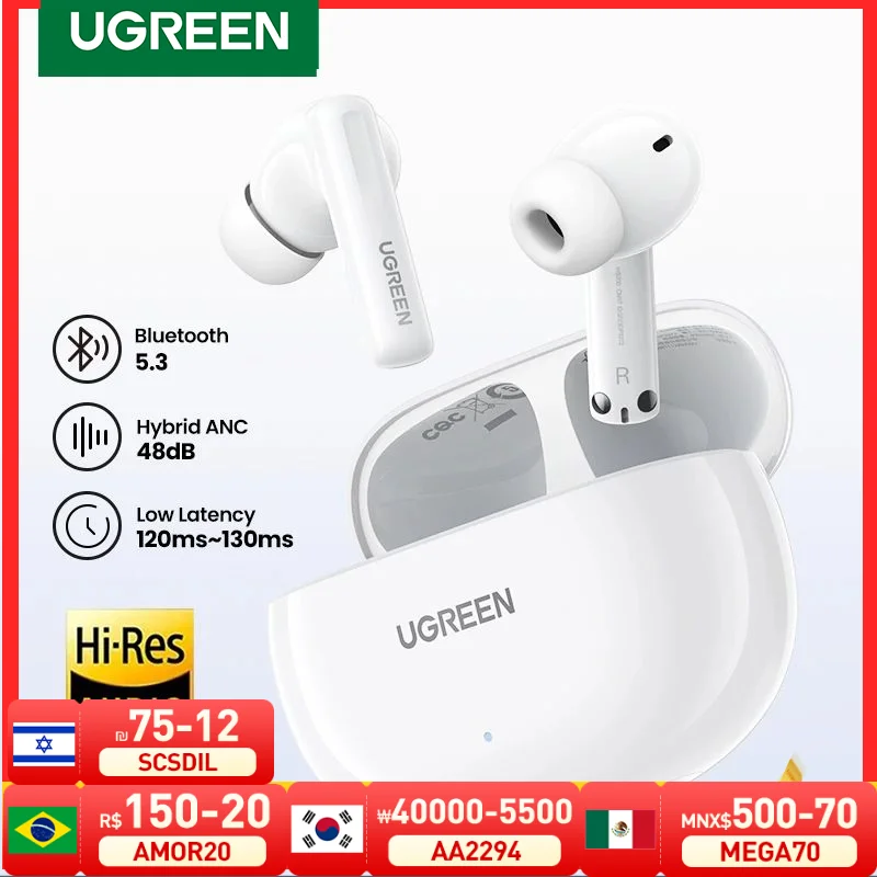 SALE UGREEN HiTune T6 ANC TWS Wireless Earbuds Active Noise Cancellation Hi-Res