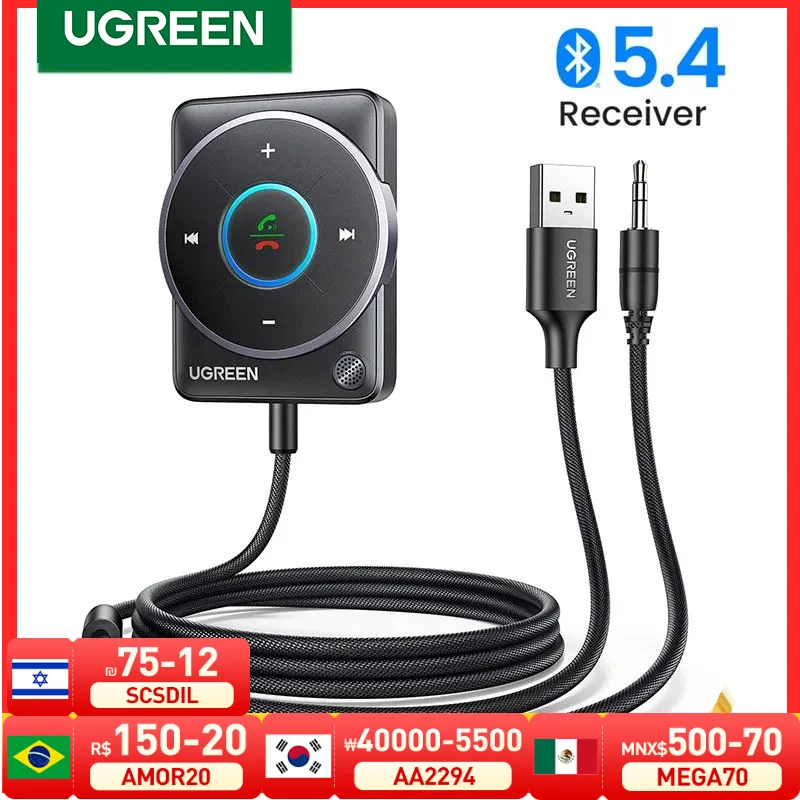 UGREEN USB Bluetooth 5.4 Car Receiver Adapter with Mics and Noise Cancellation,