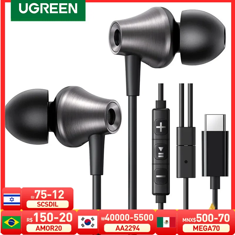 UGREEN 3.5mm USB Type C Wired Earbuds with Microphone, Wired Earphones in
