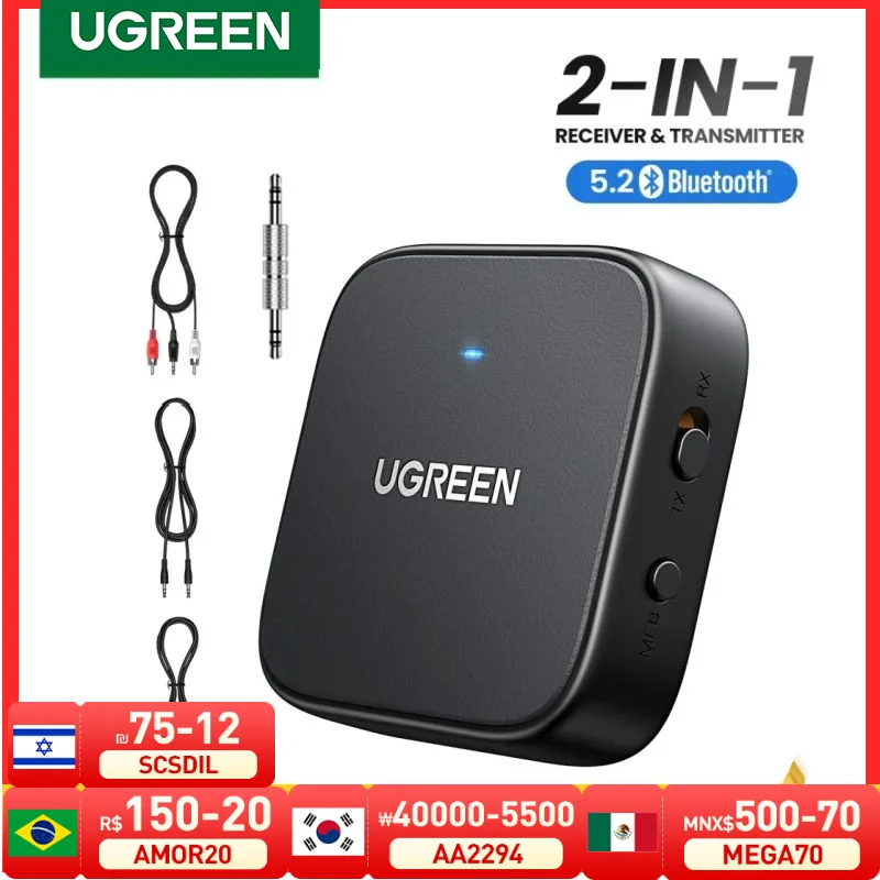 UGREEN Bluetooth Receiver Transmitter Adapter 2-in-1 Wireless Bluetooth 5.2 3.5mm Aux Audio