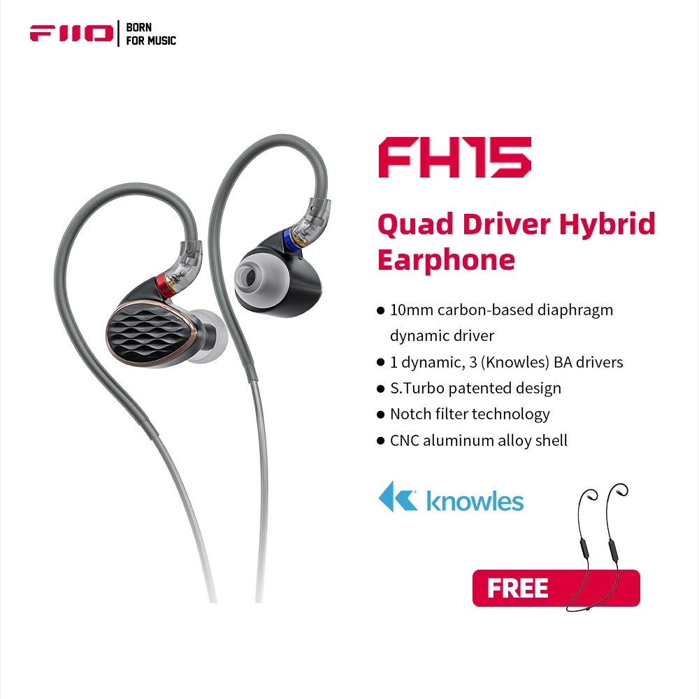 FiiO FH15 1DD 3 Knowles BA Hybrid Technology in-Ear Earphone with 3.5mm/4.4mm