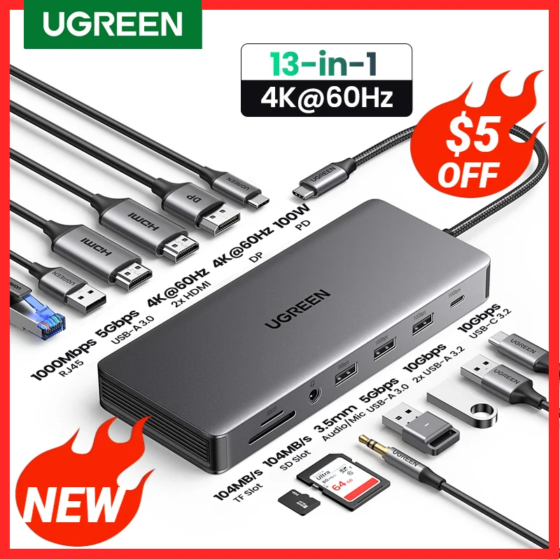 UGREEN USB C Docking Station 13 in 1 4K Triple Display Dual
