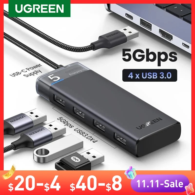 ?NEW?UGREEN USB HUB USB3.0 HUB 4 Ports 5Gbps USB Multi Splitter Adapter