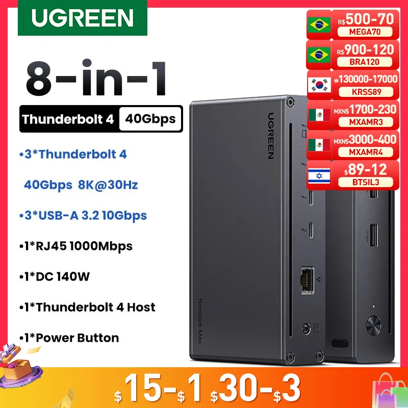 UGREEN 8-in-1 Docking Station 8K30Hz Thunderbolt 4 40Gbps Dock USB3.2 Gen2 10Gbps