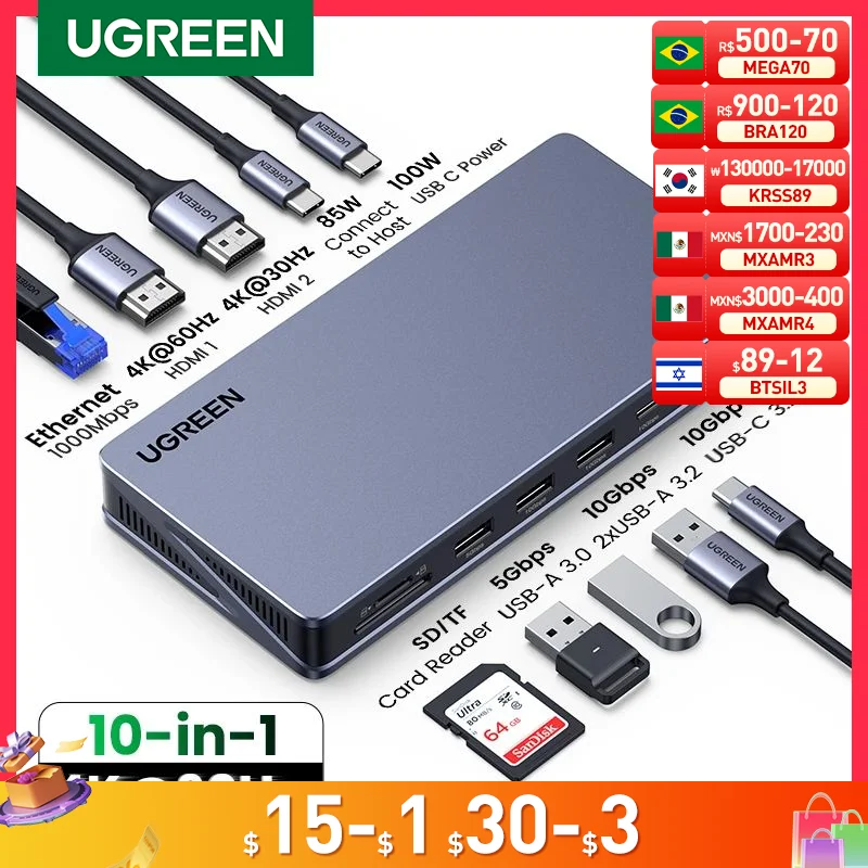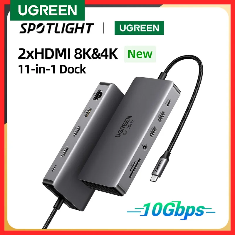 UGREEN 10-in-1 Docking Station Expand Dual HDMI USB 8K30Hz HDMI Adapter Splitter