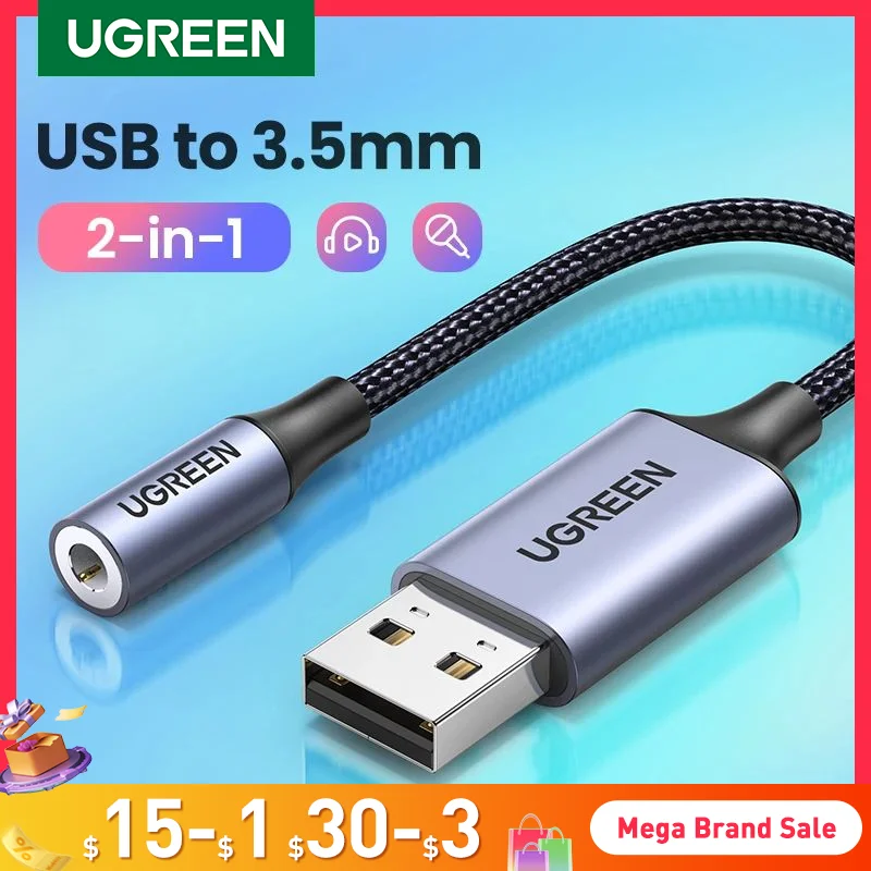 UGREEN Sound Card USB to 3.5mm Audio Interface Adapter for Earphone Mic