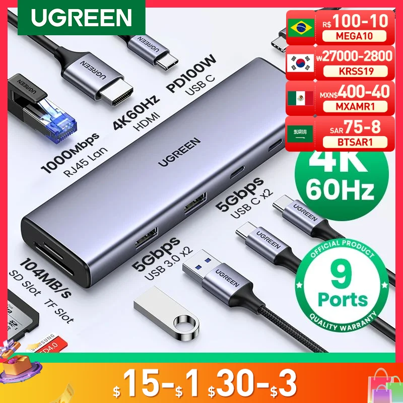 UGREEN Steam Deck Dock 4K60Hz 9 Ports RJ45 PD100W USB C HUB