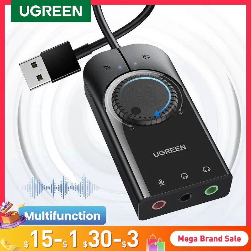 UGREEN Sound Card USB Audio Interface External 3.5mm Microphone Audio Adapter Soundcard