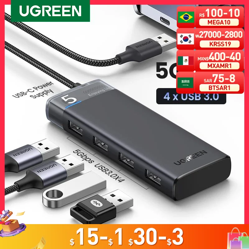 UGREEN USB HUB USB3.0 HUB 4 Ports 5Gbps USB Multi Splitter Adapter