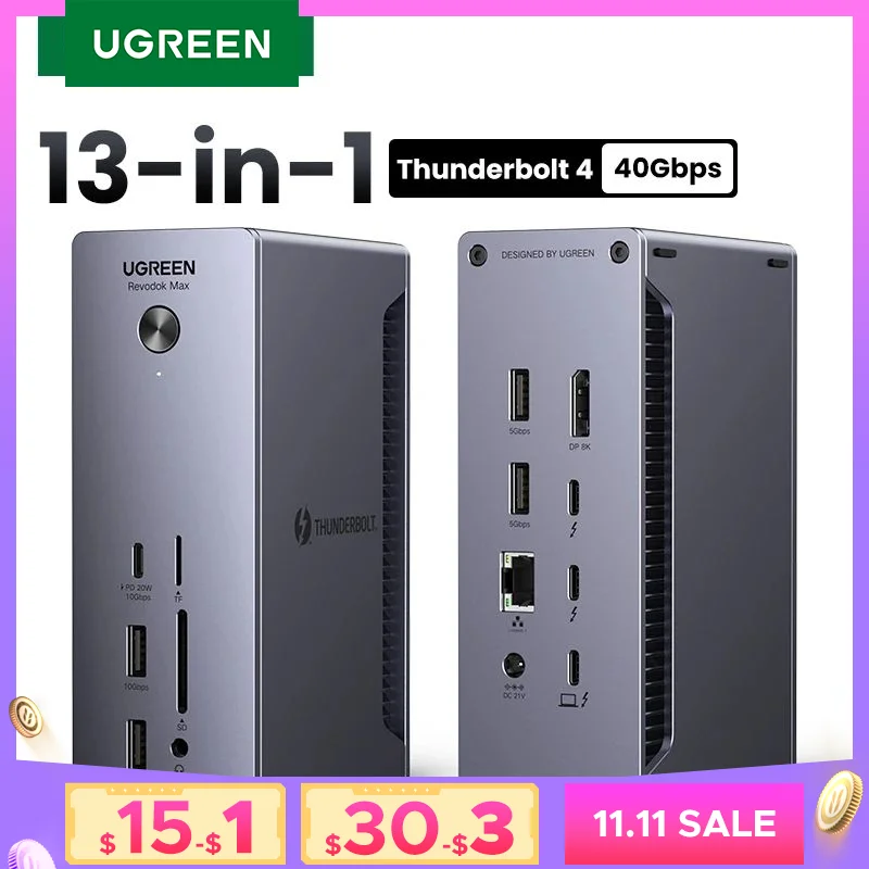 UGREEN 8-in-1 Docking Station 8K30Hz Thunderbolt 4 40Gbps Dock USB3.2 Gen2 10Gbps