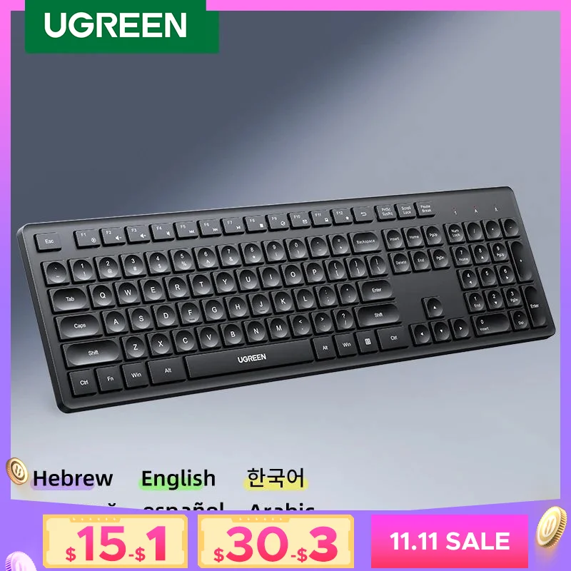 UGREEN Keyboard Wireless Bluetooth & 2.4GHz Russian/Korean/English Keycaps for Laptop MacBook iPad