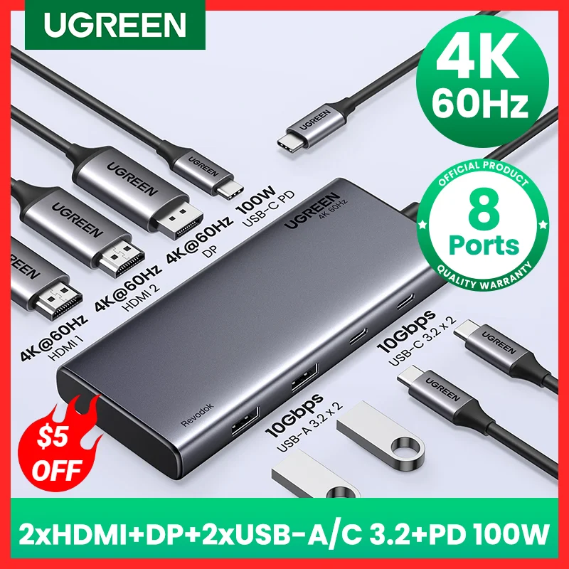 UGREEN Triple Display USB C HUB 10Gbps 4K HDMI Adapter 8-in-1 Splitter