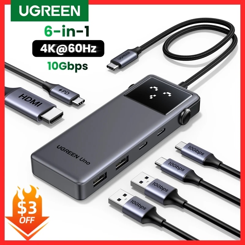 UGREEN Uno USB C HUB 6-in-1 4K60Hz PD100W 10Gbps USB3.2 Splitter Adapter