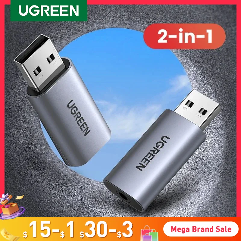 UGREEN Sound Card USB to 3.5mm Audio Interface Adapter for Earphone Mic