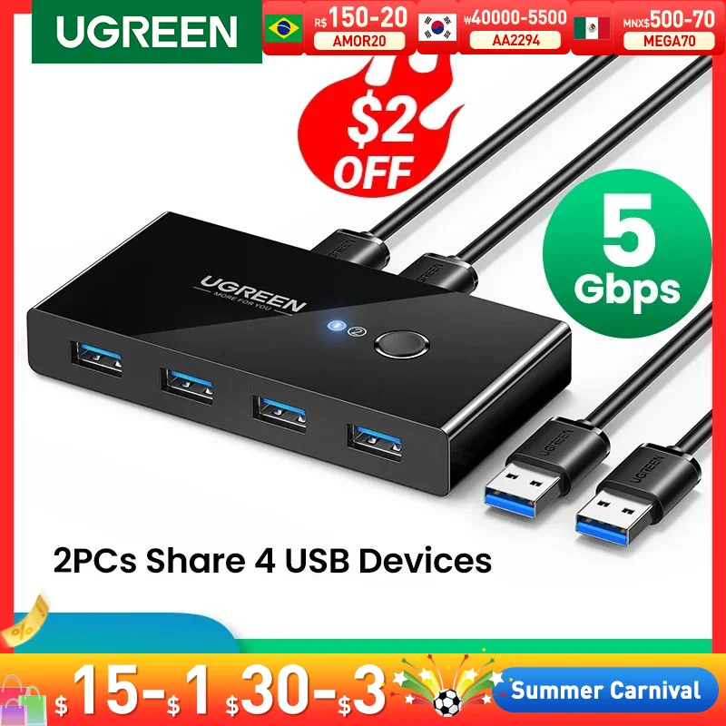 UGREEN USB Switch USB 3.0 2.0 Switcher Switch for Windows10 PC Keyboard