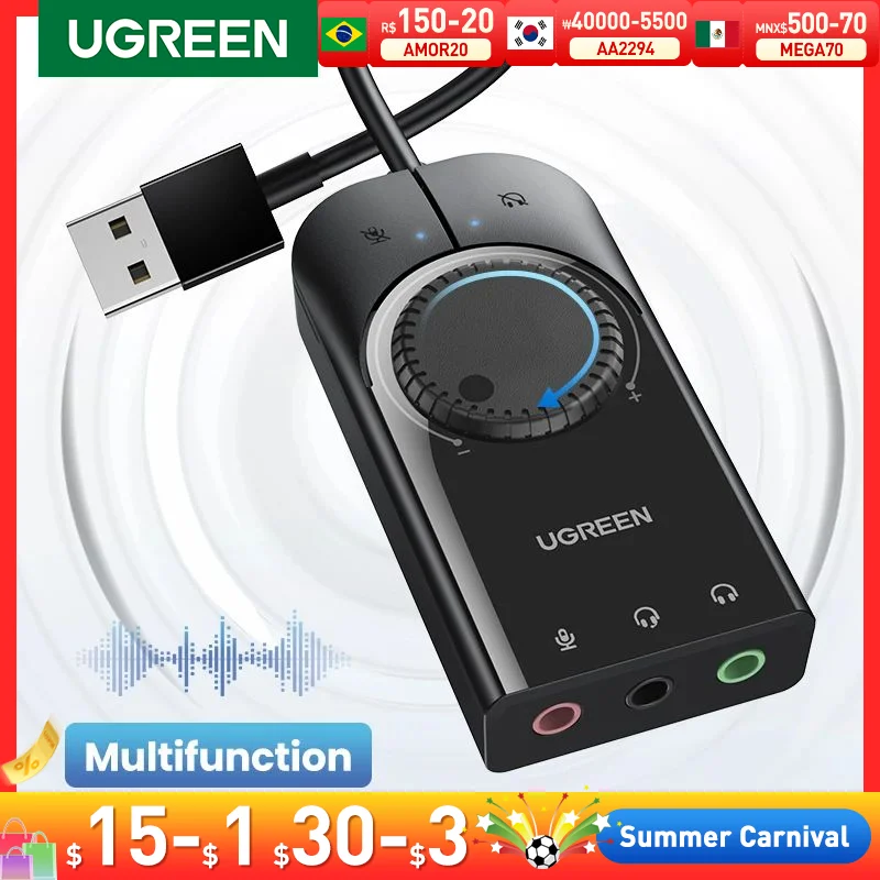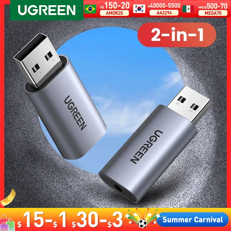 UGREEN Sound Card USB to 3.5mm Audio Interface Adapter for Earphone Mic