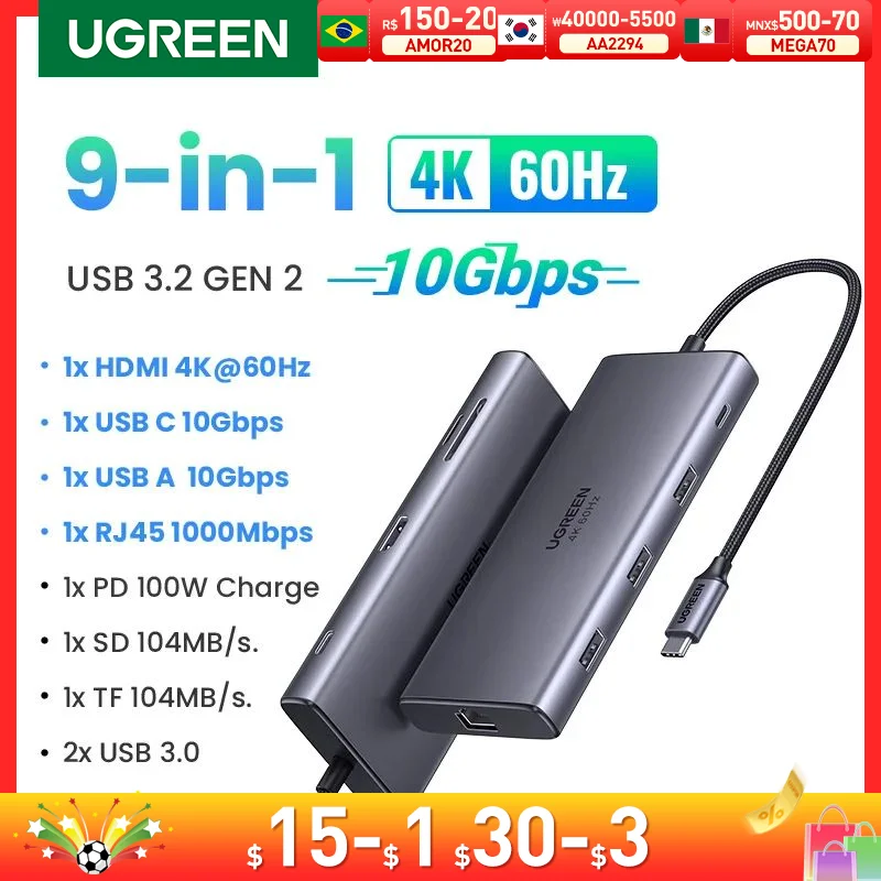 UGREEN 10Gbps USB C HUB 4K60Hz Type C to HDMI RJ45 Ethernet