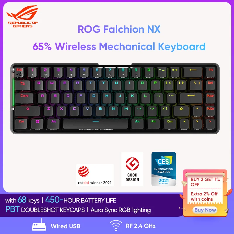ASUS ROG Falchion NX 65% USB/Wireless 2.4GHz RF Mechanical Keyboard 68 PBT
