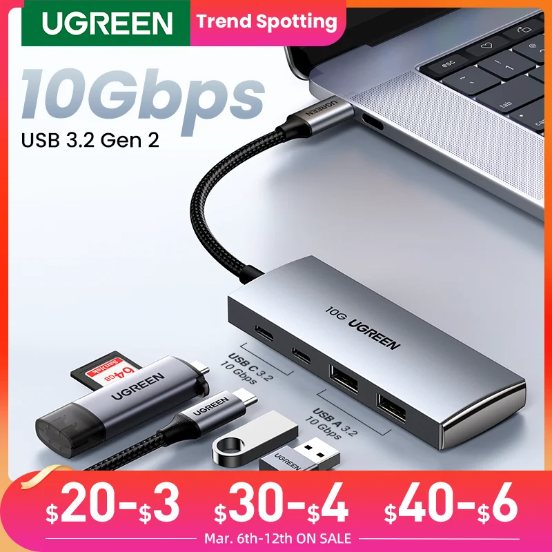 UGREEN USB C Hub 10Gbps Type-C 3.2 Gen2 USB Splitter USB C
