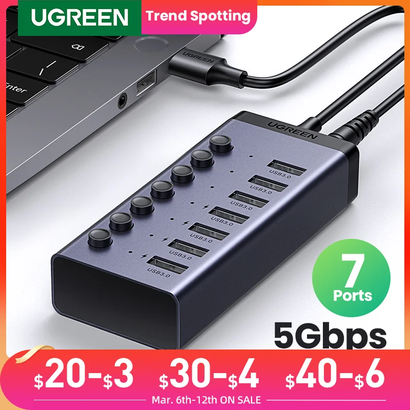 UGREEN USB C Hub 5Gbps 7 Ports USB3.0 Splitter with Individual OFF/ON