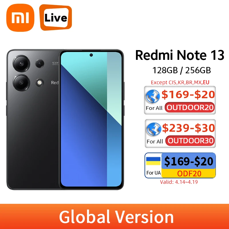New Global Version Xiaomi Redmi Note 13 Smartphone 128GB/ 256GB 6.67″ AMOLED