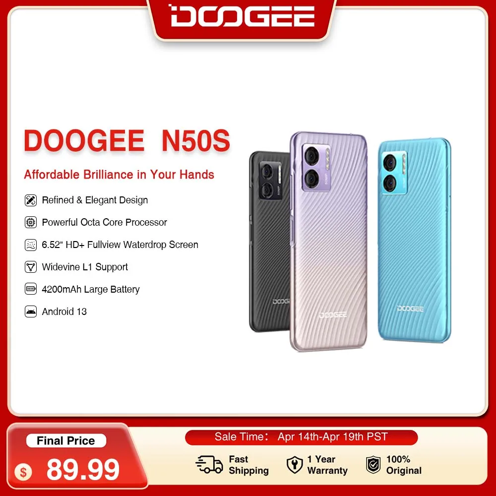 DOOGEE N50S Smartphone 6.52″ 9GB RAM +128GB ROM 20MP Ai Main Camera