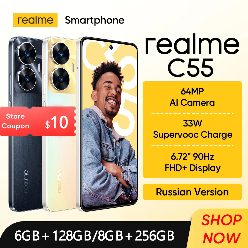realme C55 cellphone 6.72” 90Hz Display 64MP AI Camera Helio G88 Processor
