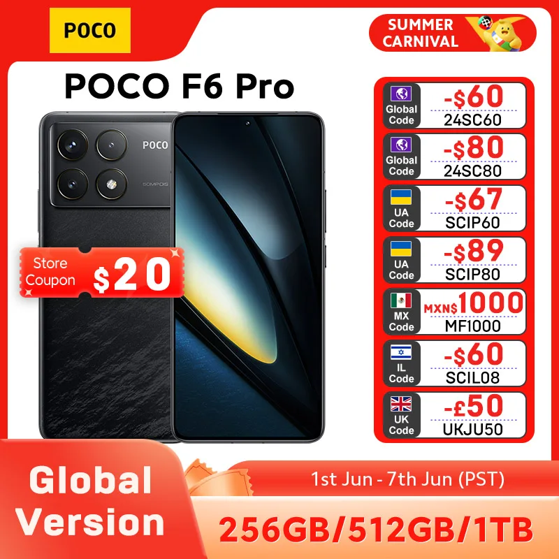 New POCO F6 Pro Global Version Smartphone Snapdragon® 8 Gen 2 120W