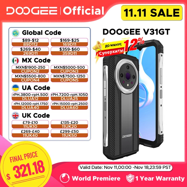 Global Version DOOGEE V31GT Rugged Phone 6.58″ FHD 120Hz Display 5G Thermal