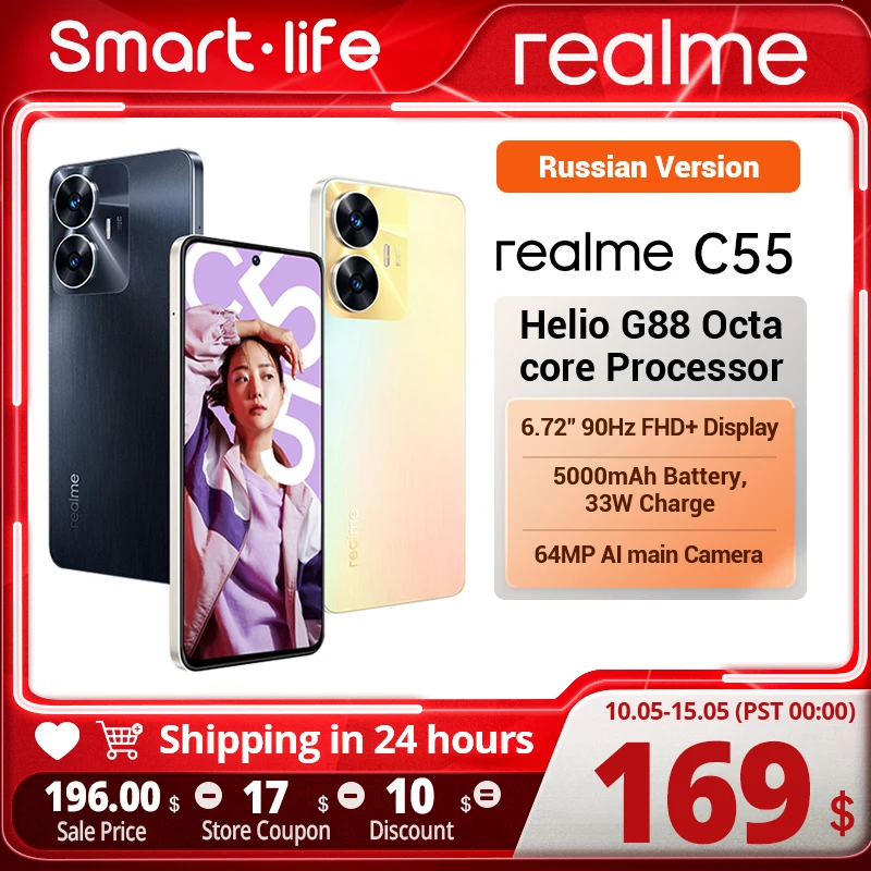 Russian Version Realme C55 Smartphone New 64MP AI Camera Helio G88 Processor