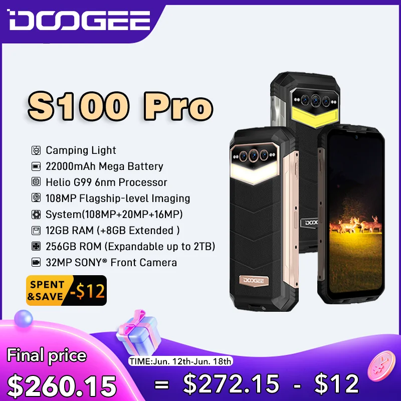 DOOGEE S100 Pro Rugged Phone 12GB+256GB Helio G99 6nm 6.58 Display Cellphone