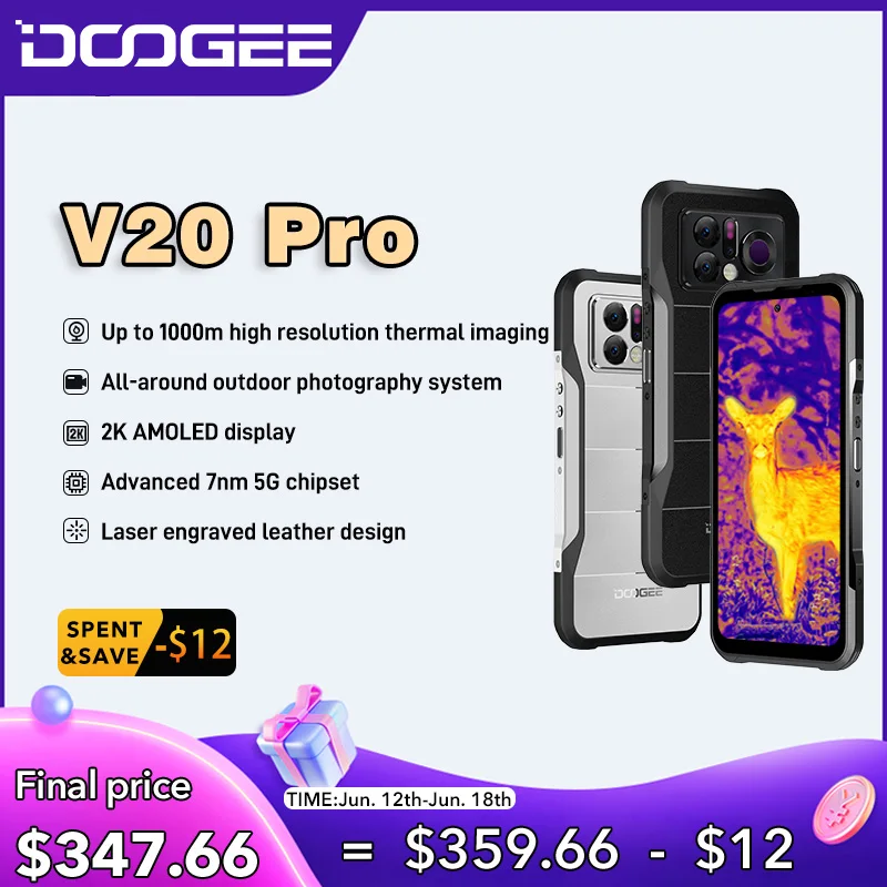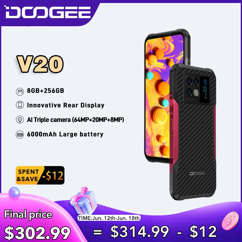 World Premiere DOOGEE V20 Pro Rugged Phone 12GB+256GB 6.43”2K AMOLED Display Cellphone