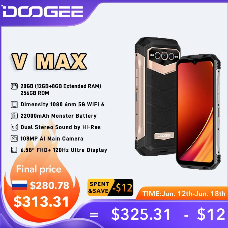 World Premiere DOOGEE V Max 5G Rugged Phone 22000mAh 12GB+256GB Cellphone 108MP