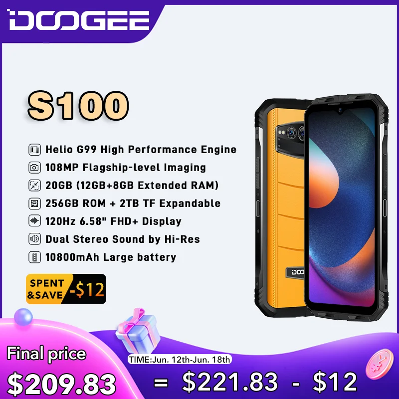 DOOGEE S100 Rugged Phone 12GB+256GB 120Hz Helio G99 Phone 6.58″ Display108MP Camera