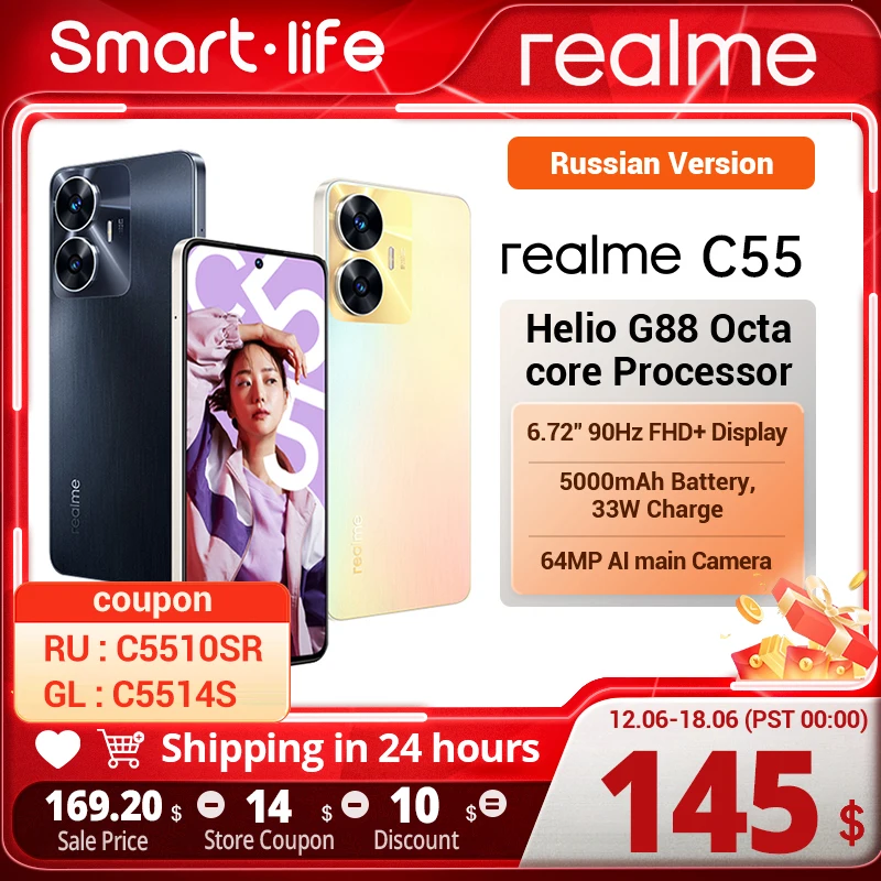 Russian Version Realme C55 New 64MP AI Camera Helio G88 Processor 6,72”