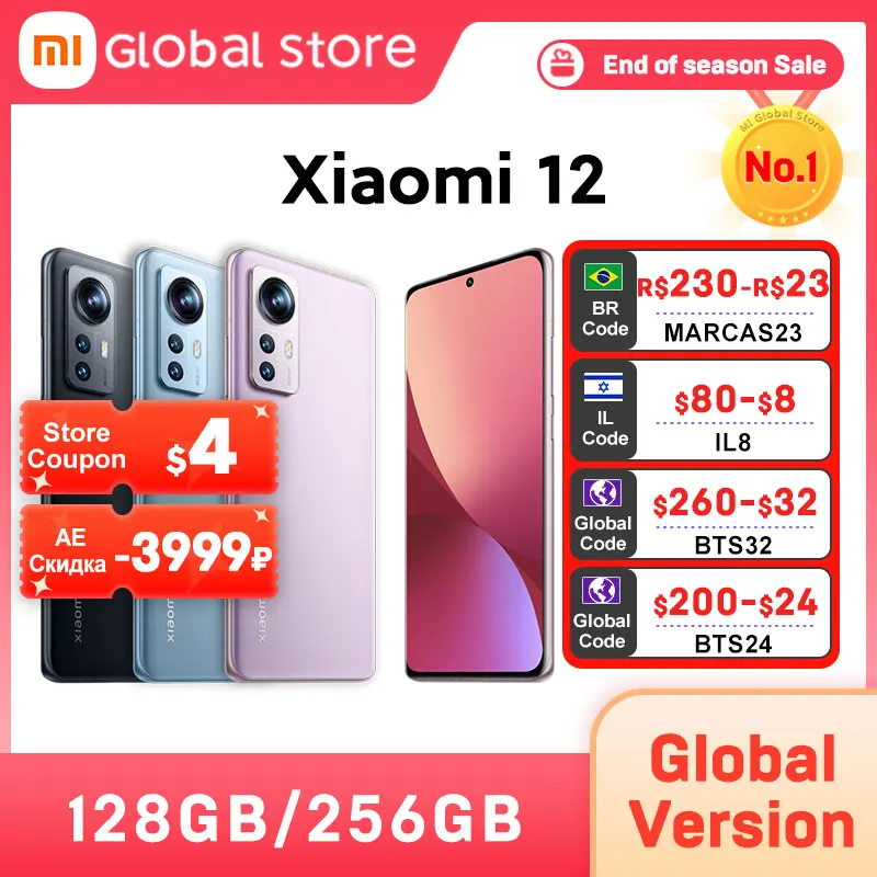 Global Version Xiaomi 12 Smartphone 128GB/ 256GB NFC Snapdragon8 Gen 1 Octa