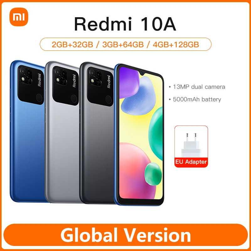 Global Version Xiaomi Redmi 10A 32/64/128GB Smartphone Helio G25 Octa Core 6.53”