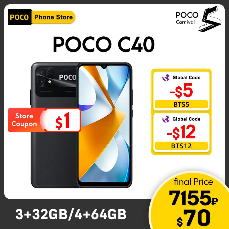 Global Version POCO C40 Smartphone Octa Core CPU 6.71″ DotDrop Display