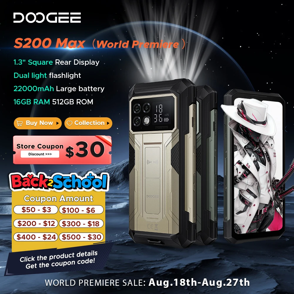 World Premiere DOOGEE S200 Max Rugged Phone 16GB 512GB 22000mAh Battery 66W