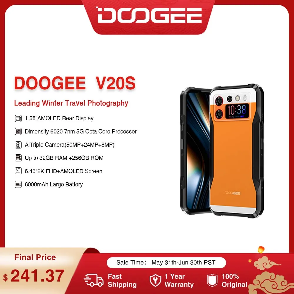 World Premiere DOOGEE V20 Pro Rugged Phone 6.43”2K AMOLED Display 12GB+256GB 1440*1080