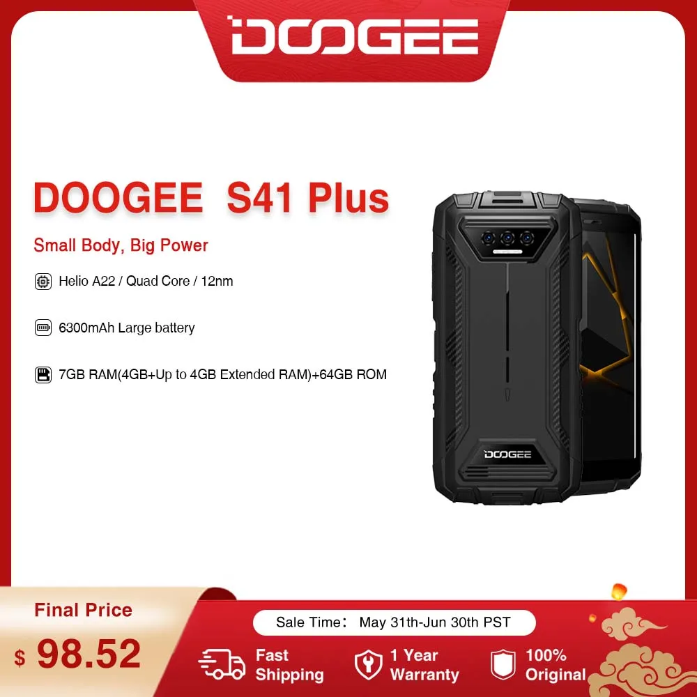 DOOGEE S41 Plus Rugged Phone 5.5″ IPS HD 13MP AI Triple Camera